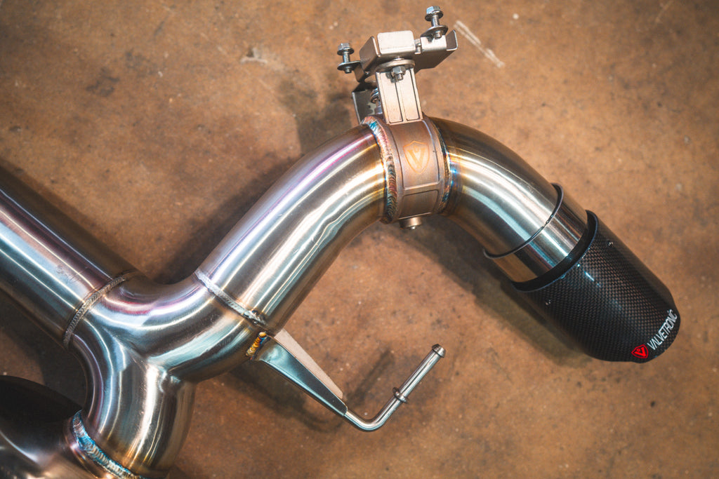 With valves closed, all exhaust gases are forced to be routed through our quad-chambered muffler, quieting down the exhaust tone to stock levels for those early morning startups, providing an unparalleled level of flexibility when needed. Open it up however and the tone completely changes as the exhaust gases bypass the muffler and go straight out the other side providing an enjoyable, drone-free experience. Our goal with this axle-back setup is to give the driver the ideal sound experience. Whether you want to combine this modification with other aftermarket free-flow components or this is the only exhaust modification you do, great sound and great flexibility comes guaranteed. At Valvetronic Designs, we do not compromise. You shouldn't either when choosing the best exhaust system for your BMW.